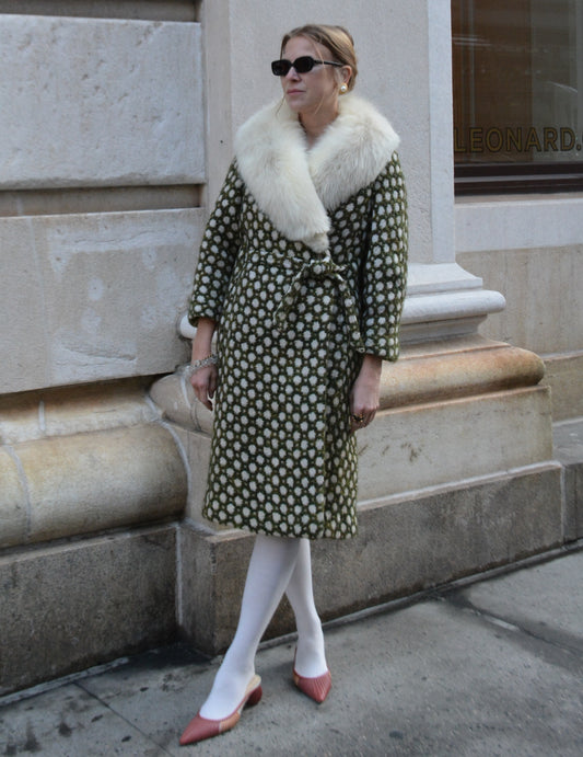 Vintage 1960s Bouclé Wool Coat with Fox Fur Collar