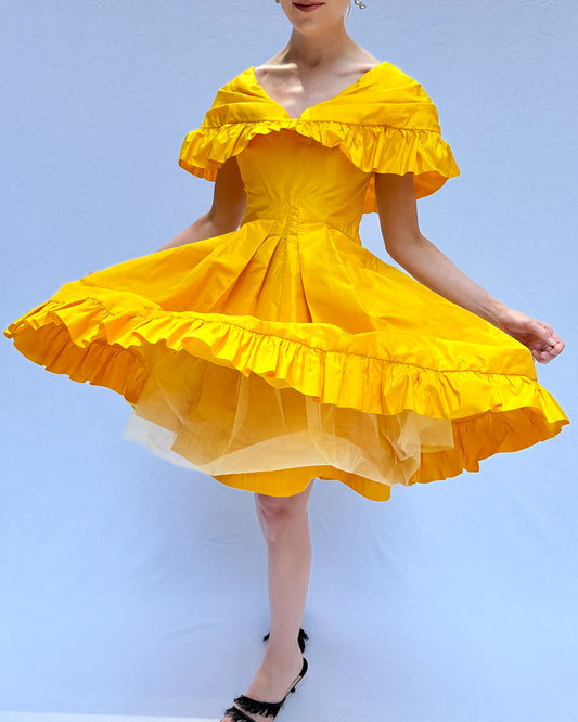 Vintage 1980s Arnold Scaasi Cape Collar Ruffled Cocktail Dress
