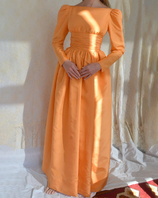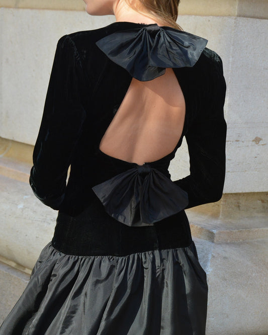 Vintage 1980s Cummerbund Waist Gown with Cutout Bow Back