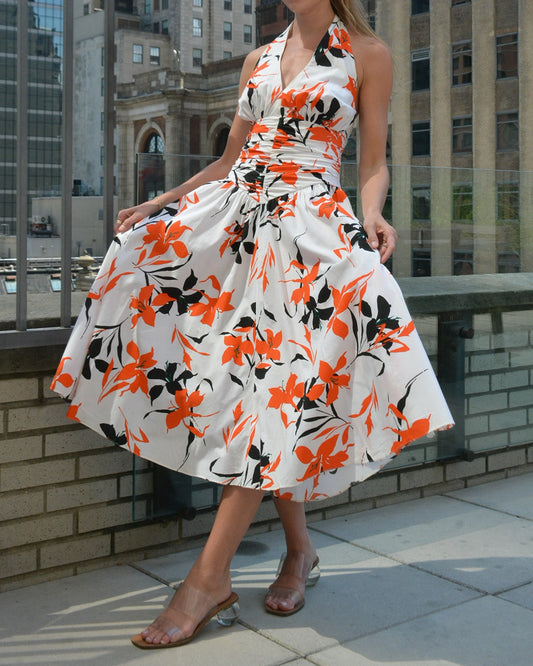 Vintage 1980s-does-1950s Cotton Floral Halter Dress