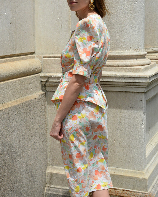 Vintage 1980s-does-1940s Citrus Floral Peplum Shirtdress