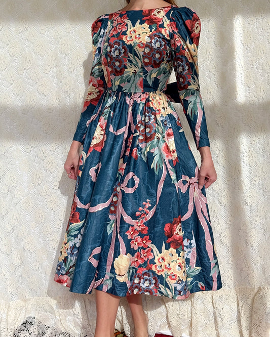 Vintage 1980s Victor Costa Long Sleeve Full-Skirt Dress