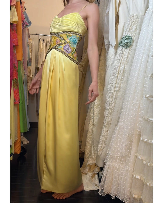Vintage 1980s Mary McFadden Silk Column Gown with Beaded Bodice (Attributed)