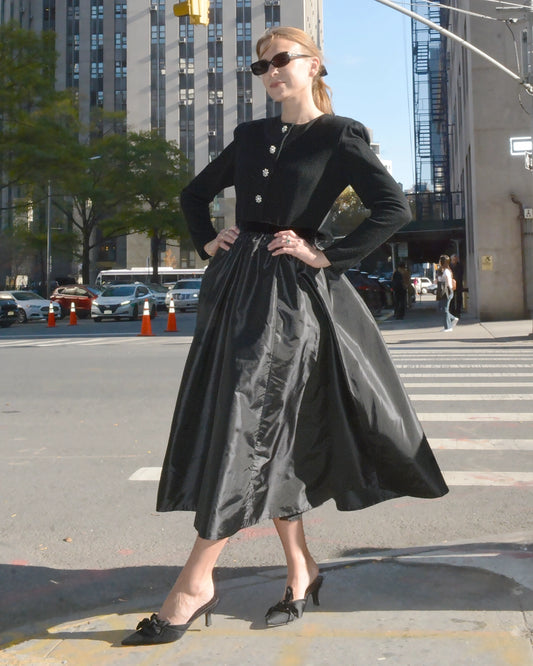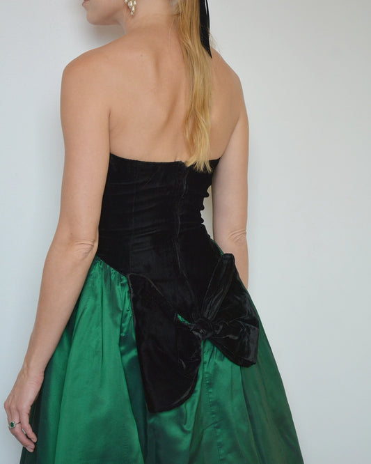 Vintage 1980s Velvet Basque-Waist Party Dress with Bow Detail