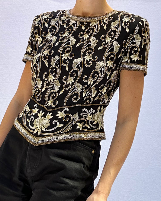 Vintage 1980s Silk Beaded Croptop