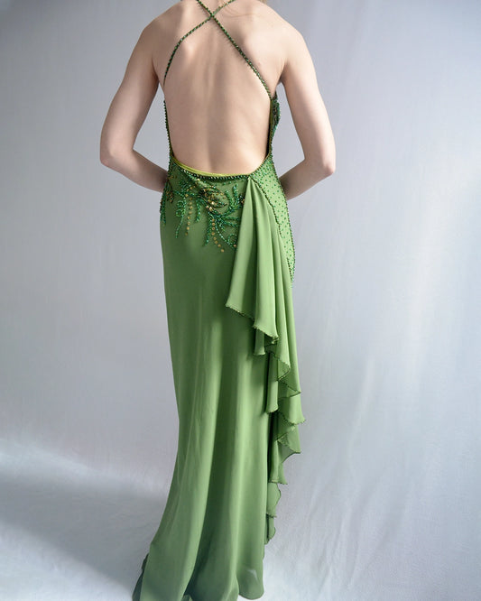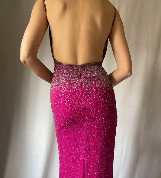 Vintage 90s Bias-Cut Open-Back Beaded Gown