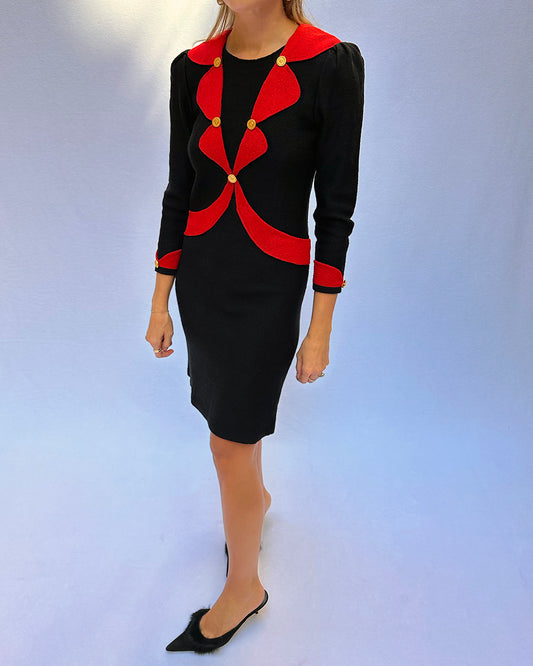 Vintage 90s Valentino Silk-Trim Skirt Set with Tortoiseshell Buckle Detail