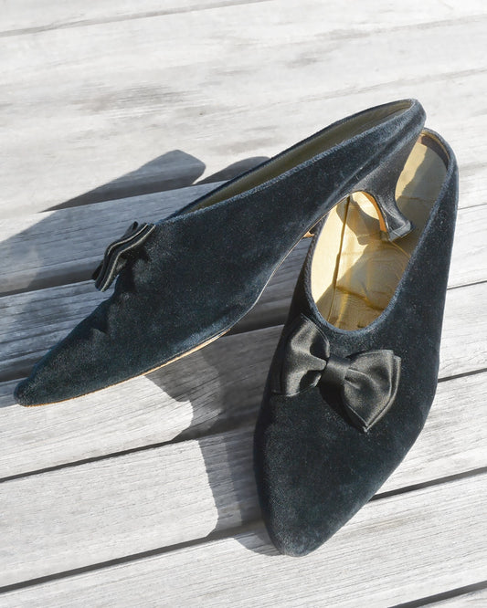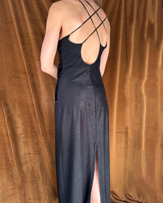 Vintage Black Velvet Corset-Seamed Bodice Dress