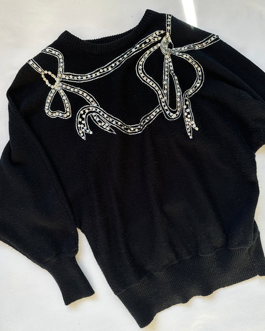 Vintage Embellished Bow Sweater