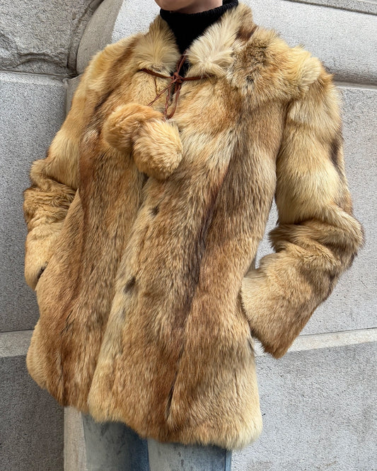 Vintage Fox Fur Coat with Pom Pom Tassels