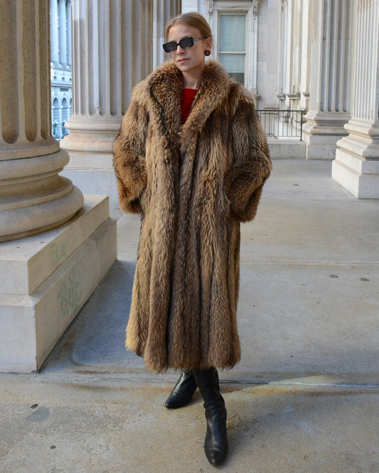 Vintage Full Length Tanuki Raccoon Fur Coat