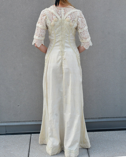 Antique Cotton and Lace Dress with Soutache Appliqué, circa 1910