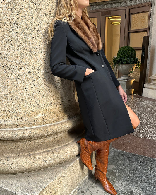 90s Designer Vintage Mink-Trimmed Wool Coat