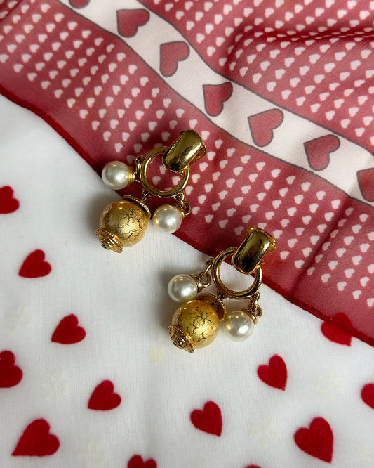 Vintage Gold And Pearl Rococo Girandole Chandelier Earrings