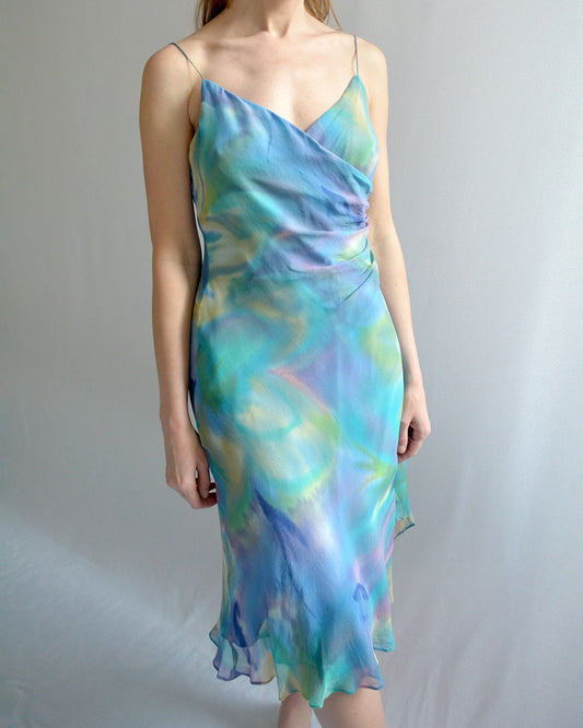 Vintage Hand-Dyed Bias-Cut Silk Chiffon Dress