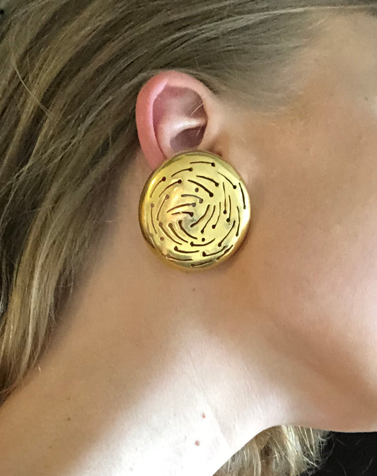 Vintage Hammered Gold And Pearl Surrealist Earrings