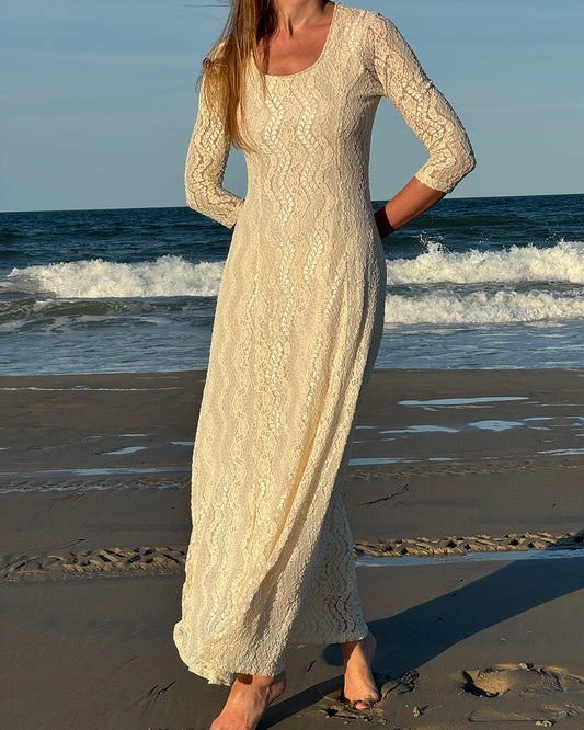 Vintage Ivory Lace Long Sleeve Princess Cut Column Dress