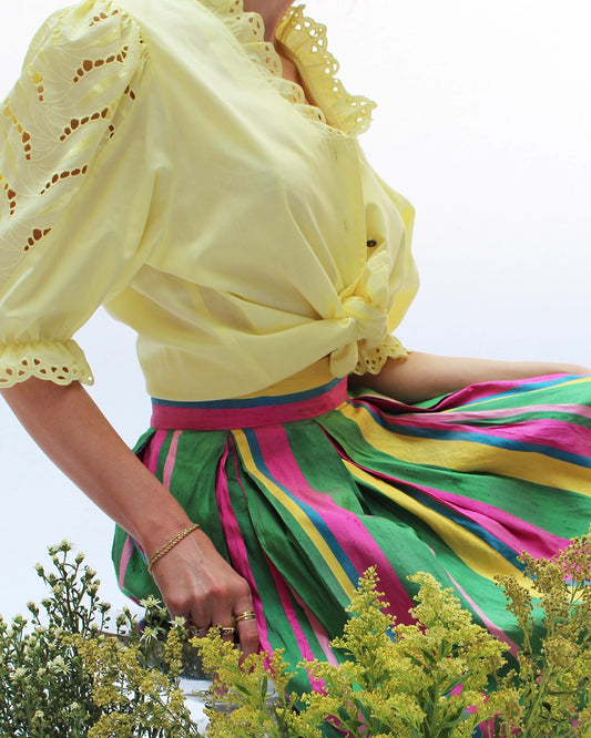 Vintage Printed Floral Cotton Pique Wrap Skirt