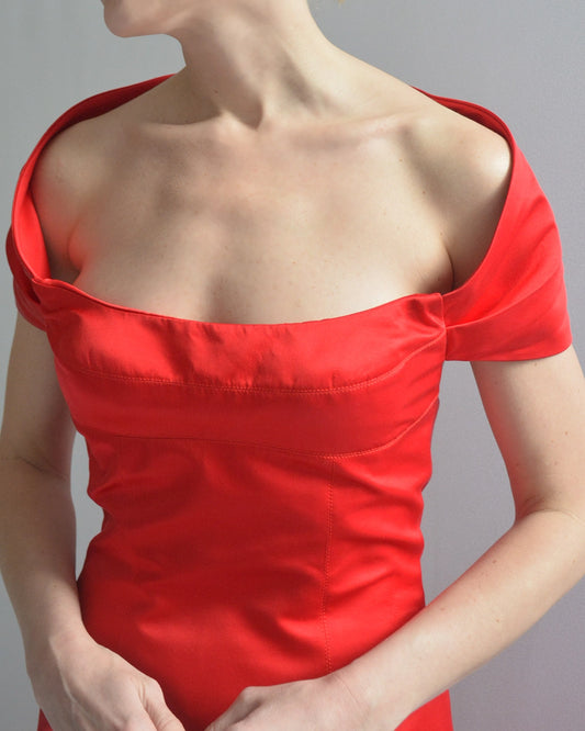 Vintage Richard Tyler Couture Portrait Neckline Satin Gown