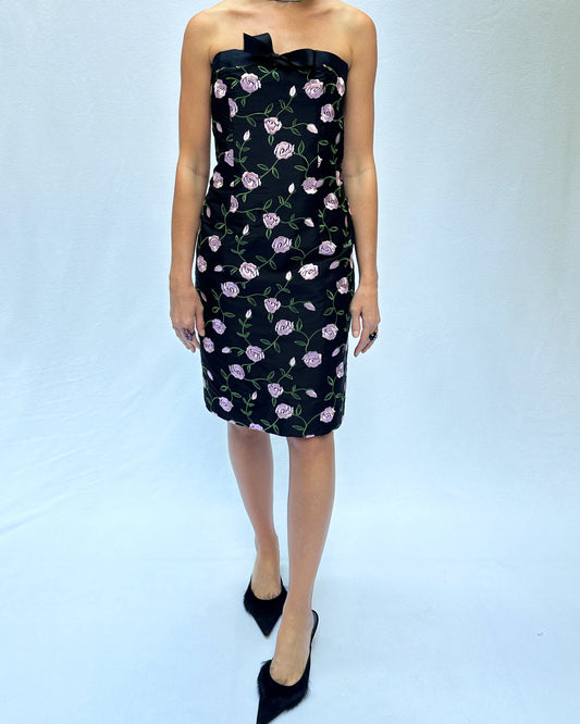 Vintage Steven Stolman Embroidered Silk Cocktail Dress