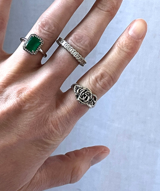 Vintage Sterling Silver Pearl-Set Rosebud Ring