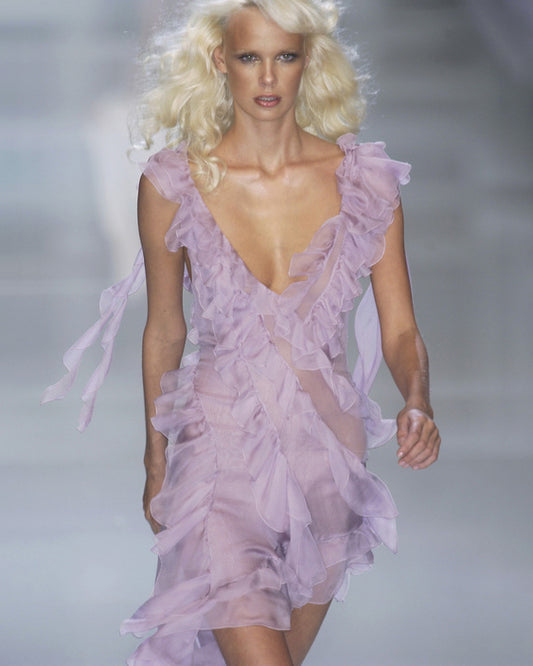 Vintage Versace Spring 2004 Silk Chiffon Ruffle Dress