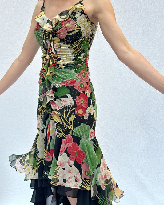 Vintage Y2K Bias-Cut Beaded Dress With Fishtail Hemline