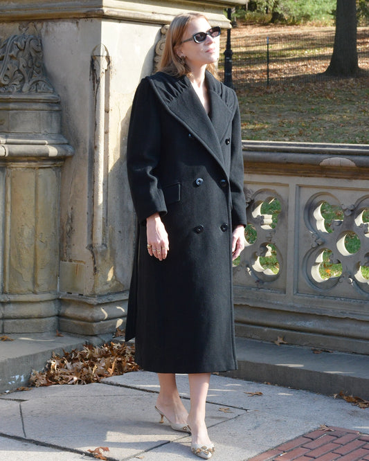Vintage Valentino Double-Breasted Wool Coat with Gathered Shawl Collar