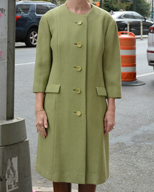 Vintage Waffle-Texture Wool Coat