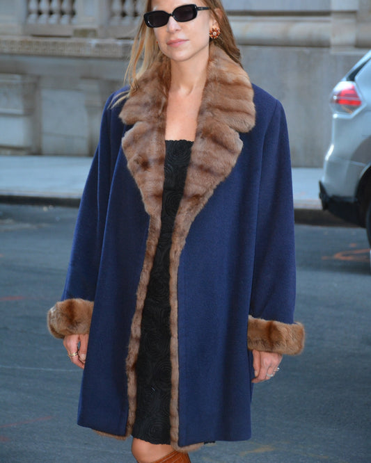 Vintage Yves Saint Laurent Cashmere Wool Fur-Trim Coat