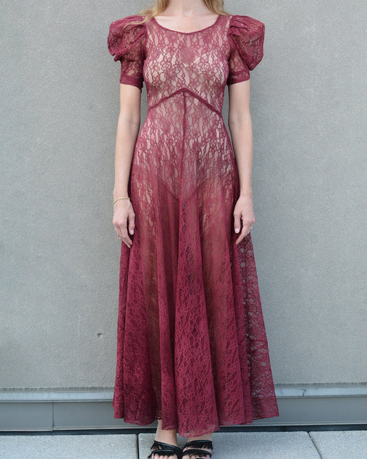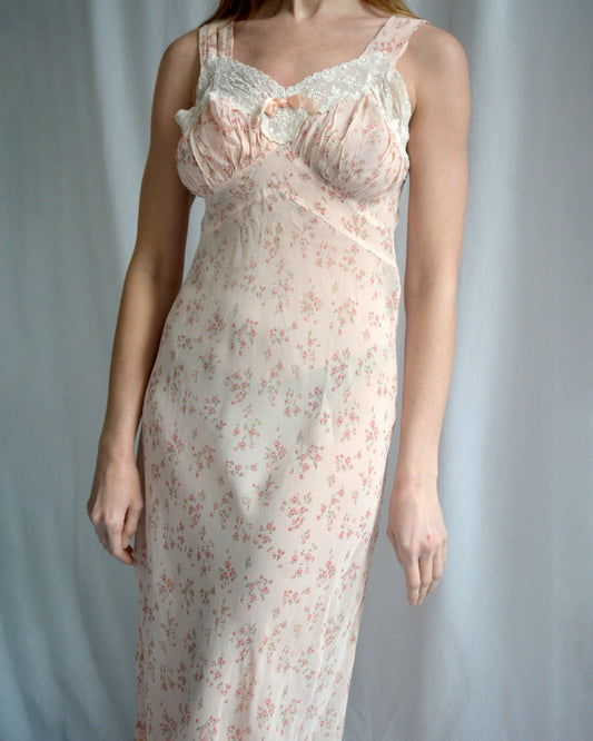 Vintage 1930s Bias-Cut Chantilly Lace Dress