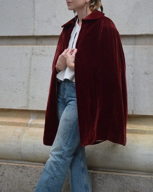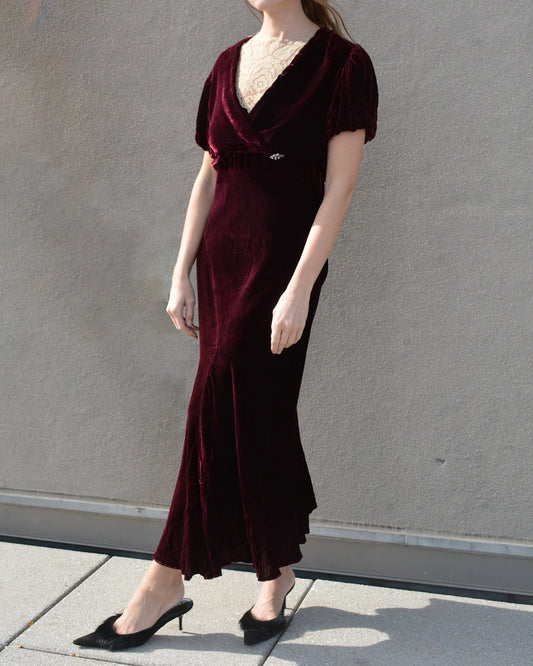 Vintage 1930s Long Sleeve Red Velvet Dress