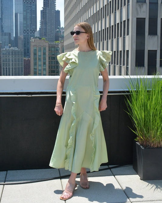 Vintage 1930s Pistachio Taffeta Ruffle Dress