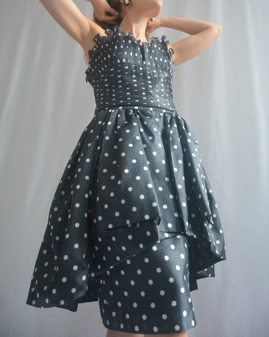 Vintage 1980s Loris Azzaro Polka Dot Corset Two-Piece Dress