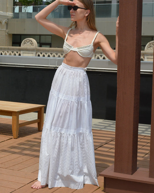 Vintage White Eyelet Tiered Maxiskirt