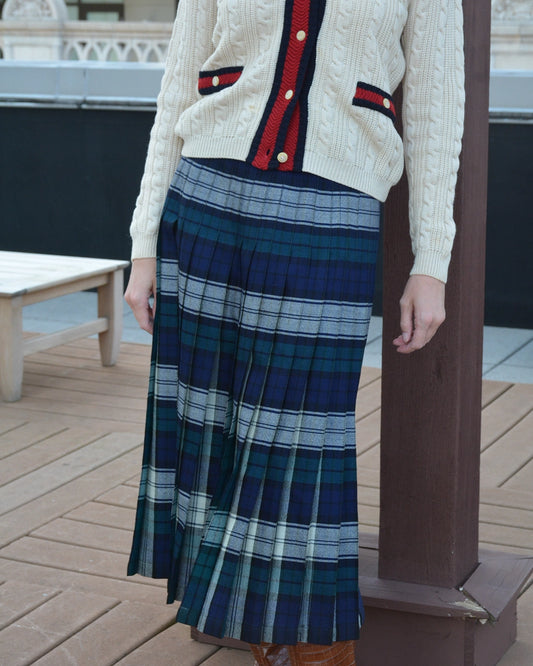 Vintage Tartan Wool Pleated Midiskirt