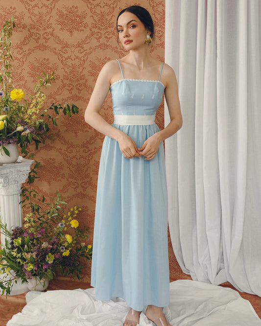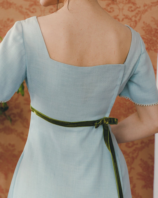1930s-Style Empire Waist Column Dress With Velvet Waistband