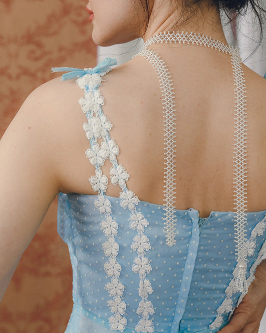 Vintage Ombré Swiss Dot Dress With Floral Crochet Appliqué