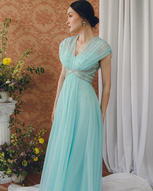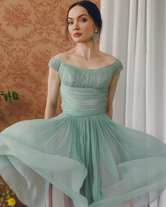 Vintage 1950s Gathered Silk Chiffon Fit-And-Flare Dress
