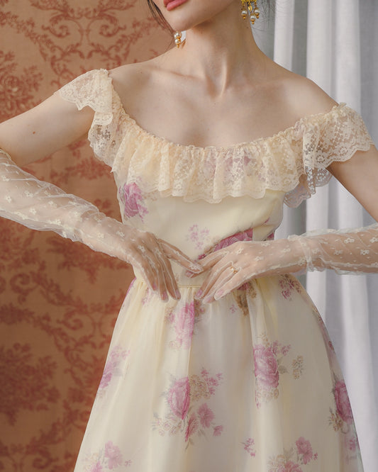 Vintage Watercolor Floral Off-The-Shoulder Maxidress