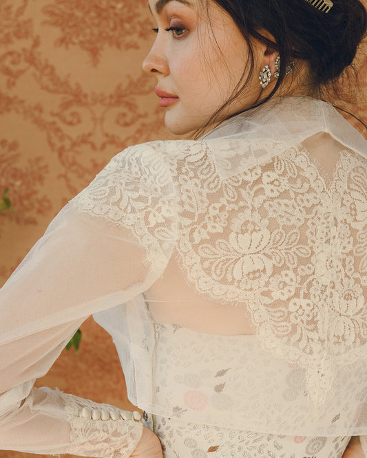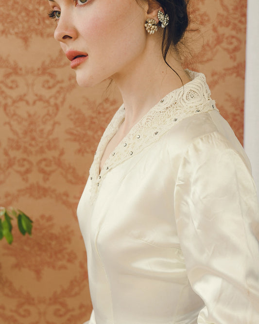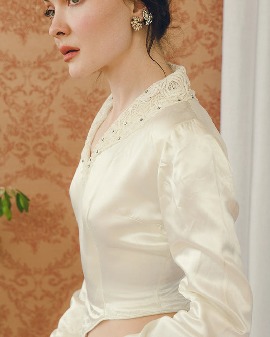 Vintage Lace-Trimmed Ivory Bridal Suit