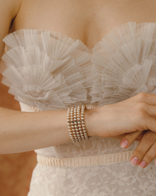 Vintage 1950s Pearl Spiral Cluster Earrings & Bracelet Set