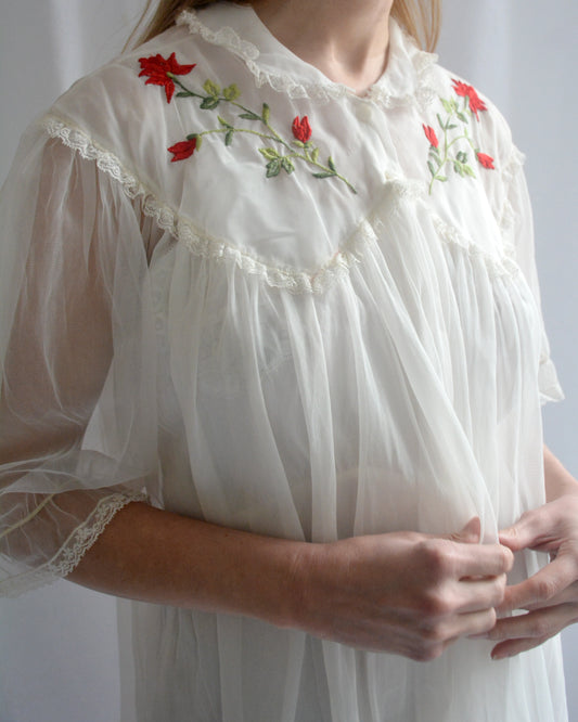 Vintage Ivory Silk Mesh-Inset Miniskirt