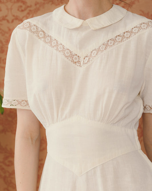 Vintage 1940s Peter Pan Collar Dress With Lace Insets