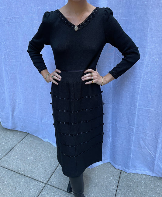 1980s Wayne Clark Long Sleeve Cocktail Dress