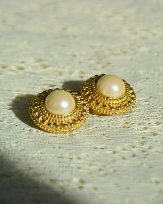 Vintage Gold and Pearl Button Stud Earrings