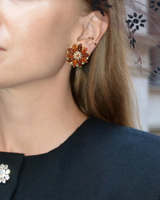 Vintage Red Poinsettia Cluster Earrings