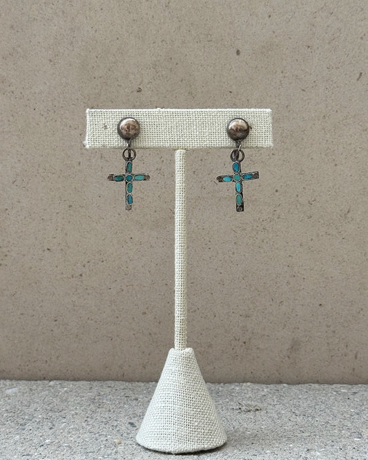 Vintage Turquoise and Sterling Silver Cross Drop Earrings