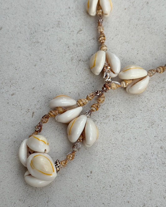 Vintage Cowrie Seashell Necklace with Loop Pendant