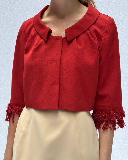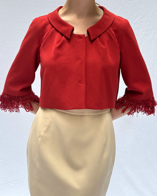 Vintage 1980s Valentino Red Wool Skirt Set with Tassel Details